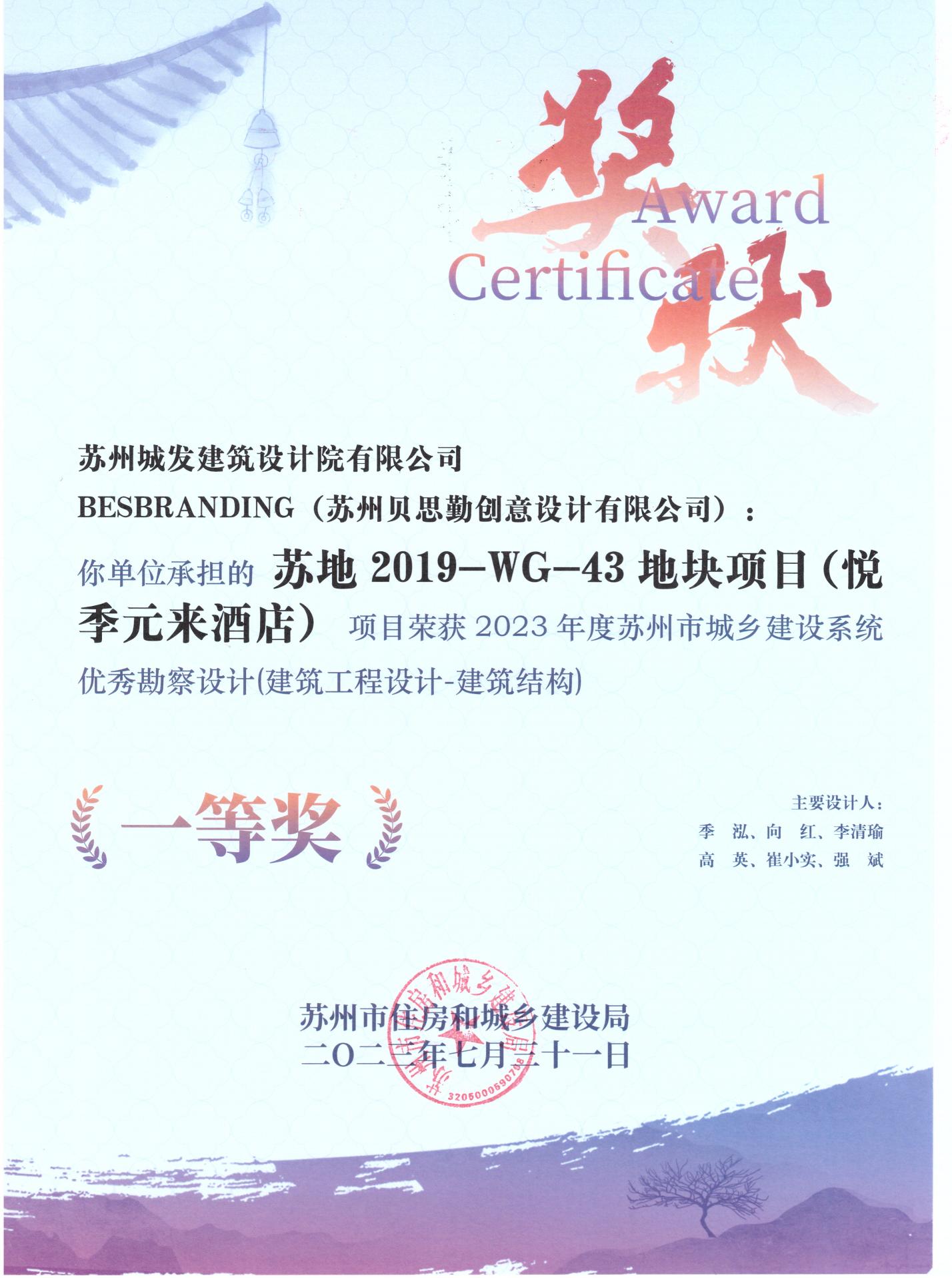 2023年度蘇州市城鄉建設系統優秀勘察設計(建筑結構)一等獎